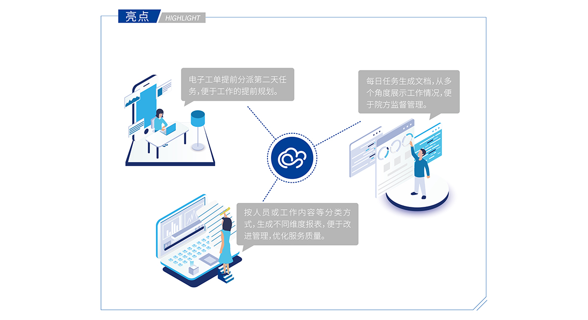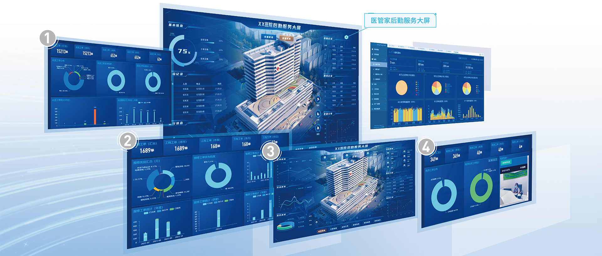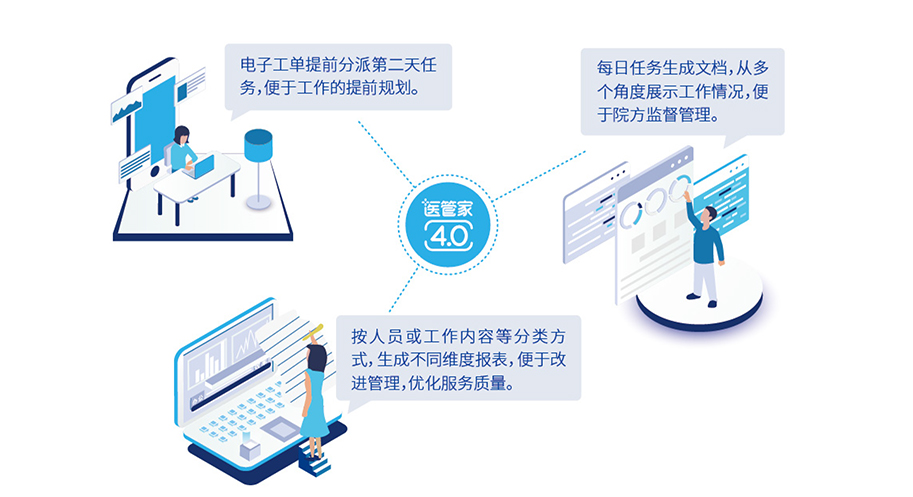 “醫(yī)管家5.0云蝶智勤”系統(tǒng),基于醫(yī)院臨床數(shù)據(jù),聯(lián)通醫(yī)院BIM、能源等多端運(yùn)維平臺(tái),通過工單數(shù)據(jù)采集分析,利用人工智能、云計(jì)算和物聯(lián)網(wǎng)技術(shù),打造融合數(shù)據(jù)、運(yùn)維、管理、服務(wù)于一體的智慧后勤服務(wù)場域,為滿足醫(yī)院提質(zhì)增效、多院區(qū)數(shù)據(jù)交互提供信息化技術(shù)手段,賦予醫(yī)院智慧服務(wù),實(shí)現(xiàn)后勤高效管理。