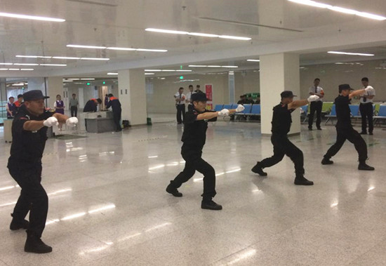 首先進行的是秩序維護隊列及擒敵拳科目的競賽。參賽選手個個精神飽滿,斗志昂揚,整齊劃一的隊列動作和規(guī)范標準的擒敵拳贏得了現(xiàn)場觀眾和評委陣陣掌聲。在另一邊,工程維修、中央運送等其它科目的競賽也在緊張有序地進行中。選手們動作嫻熟利落,有條不紊,裁判員們一絲不茍,專心致志。比賽氛圍緊張又熱烈。