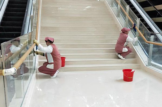 而在幾個月之前,周萍經(jīng)理剛剛接手院區(qū)管理時,現(xiàn)場情況還比較臟亂,大家每天在建筑垃圾和塵土飛揚中進行保潔開荒。雖然裝修裝潢公司不定時施工,給工作帶來一定困擾,但借助“醫(yī)管家”專業(yè)的技術和自身在項目上豐富的管理經(jīng)驗,周萍經(jīng)理合理計劃安排,在現(xiàn)有人手還不足的情況下,大家一起使用鏡面清潔技術讓大廳光亮如新,對病房采取“預潤濕集中清洗”的作業(yè)方法,讓開荒工作順利完成;尤其是在迎接各級領導參觀的時候,“醫(yī)管家”反應迅速,籌備有方,得到了兩位院長的肯定和贊揚。