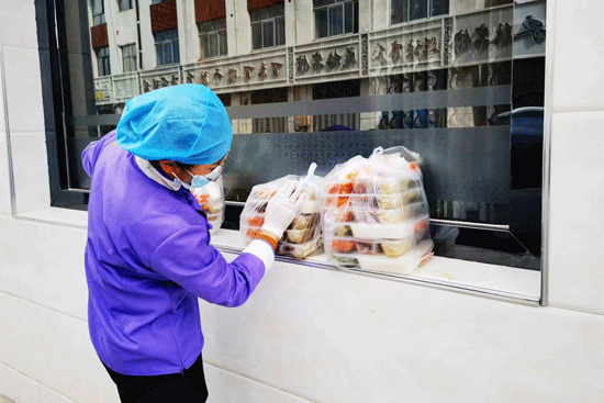 每天清晨6:30,運送部的李積華就已準時到達餐廳后廚。為保障每位一線人員吃的及時、吃上熱食,小李每次都會認真核對訂餐信息、分裝打包、檢查餐盒的密閉性、分區(qū)裝車。面對每天多樣、多湯的餐食,小李為防止餐盒晃倒就用手和胳膊緊緊護住,每次都將熱騰騰的飯菜安全送達,用餐高峰期往返達到三十幾趟,每天行走上萬步,一趟趟下來手、胳膊、腳都麻木了,但每每收到一線醫(yī)護人員的一聲“謝謝”時,小李顛簸一天的疲憊也就此消散了,揉揉雙手,再出發(fā)下一站。