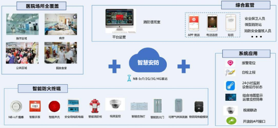其次,智慧安防以物聯(lián)網(wǎng)技術(shù)為核心,利用覆蓋范圍廣、連接力強(qiáng)、功耗低、成本低的 NB-IoT 技術(shù),把煙感探測(cè)器、電氣火災(zāi)探測(cè)器、剩余電流互感器、溫度傳感器、水壓探測(cè)器等多類(lèi)型傳感探測(cè)器的無(wú)線(xiàn)傳感終端接入安消一體化管理平臺(tái),實(shí)現(xiàn)對(duì)電氣設(shè)備、消防用水、煙霧明火和環(huán)境溫度等設(shè)備環(huán)境進(jìn)行實(shí)時(shí)監(jiān)控,發(fā)現(xiàn)異常立即發(fā)出預(yù)警提醒醫(yī)院消防管理部門(mén)。