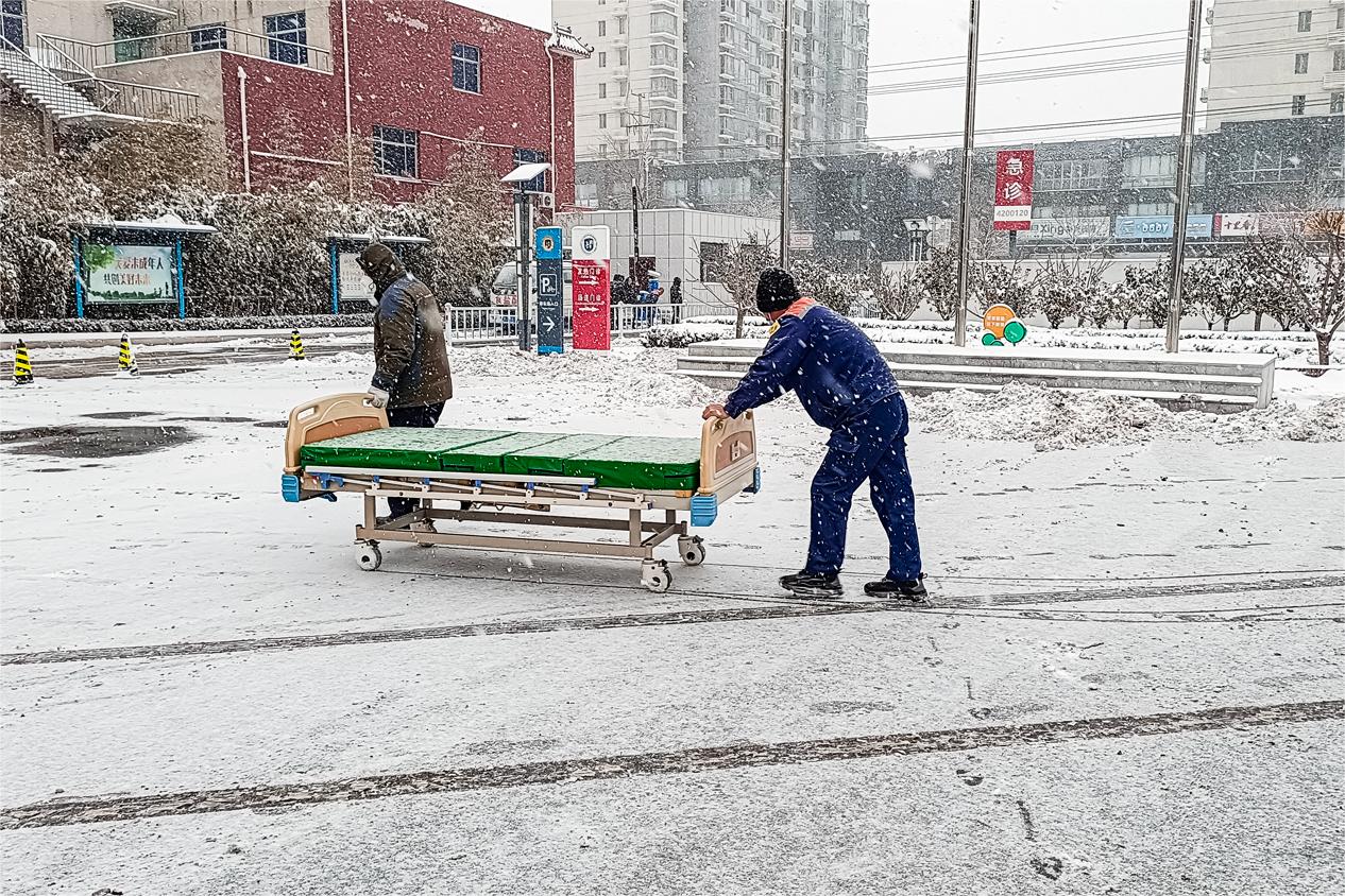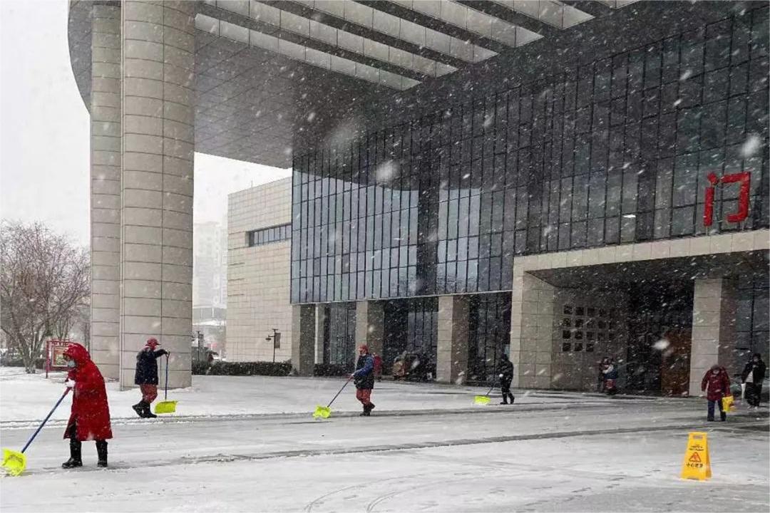 自12月以來(lái),白雪如霜,霧凇沆碭,大雪帶來(lái)了不可多得的美景,但也給廣大患者及醫(yī)務(wù)人員出行帶來(lái)一定影響?!搬t(yī)管家”項(xiàng)目中心組織人員有序?qū)Ω魅诵型ǖ?、各樓棟出入口、主干道進(jìn)行積雪清理,清理工作從深夜一直持續(xù)到凌晨。