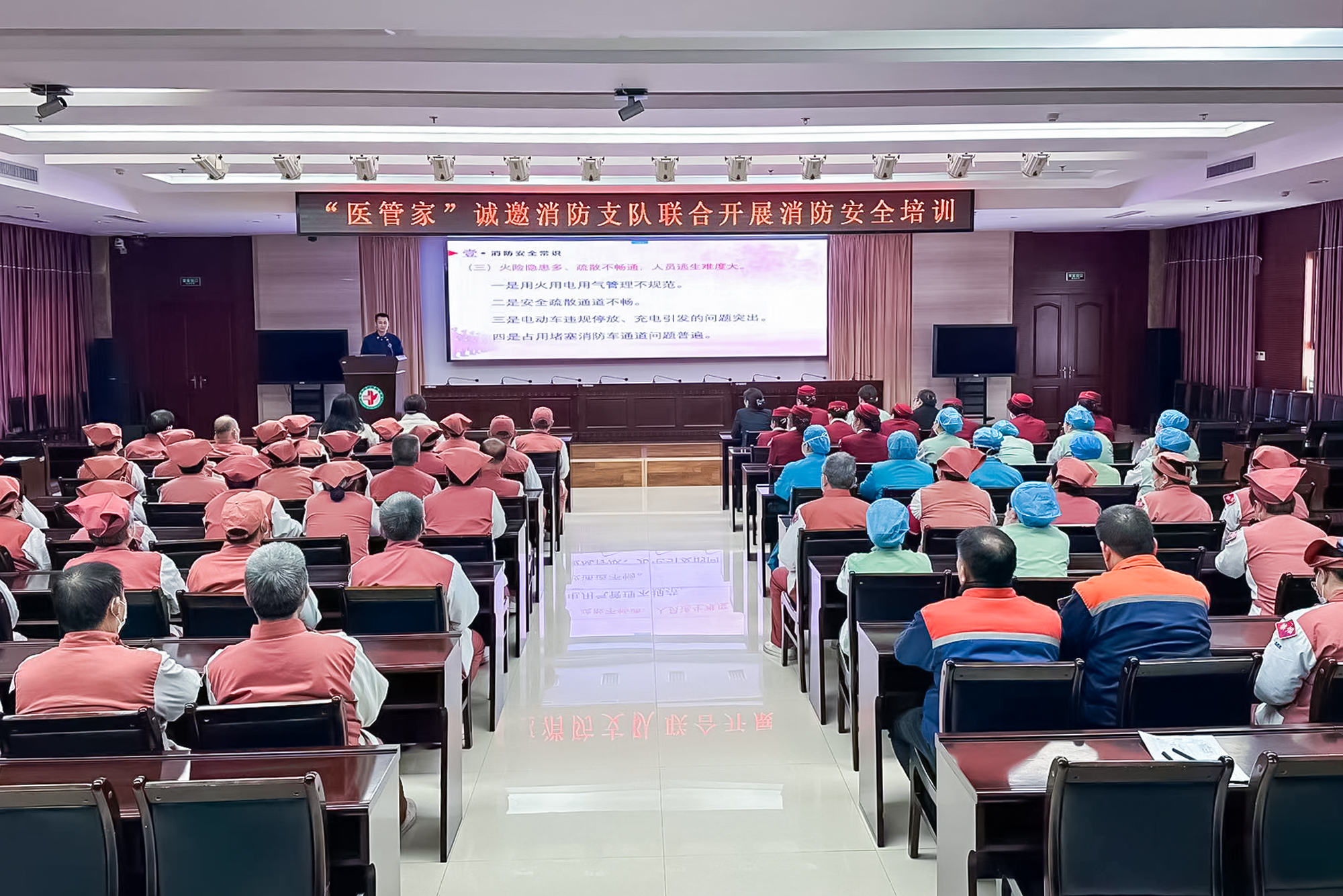 “醫(yī)管家” 各項目后勤服務(wù)中心時刻牢記“安全重于泰山”,緊繃安全弦,不斷增強全員安全防范意識,積極配合院方及消防支隊聯(lián)合培訓(xùn)院內(nèi)用電安全知識、消防專項知識、滅火器使用知識、應(yīng)急防災(zāi)知識等,牢固樹立安全發(fā)展觀念,確保各項工作的安全有序運轉(zhuǎn)。
