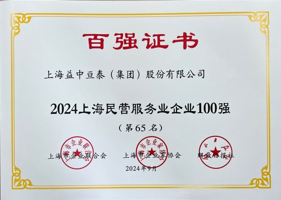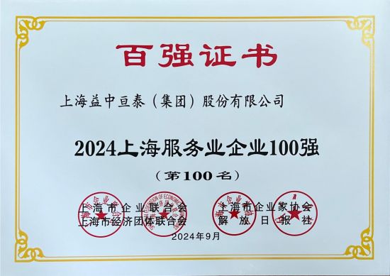 上海益中亙泰(集團)股份有限公司(“醫(yī)管家”)憑借卓越的服務和持續(xù)的創(chuàng)新榮登“2024上海服務業(yè)企業(yè)100強”和“2024上海民營服務業(yè)企業(yè)100強”雙榜單。