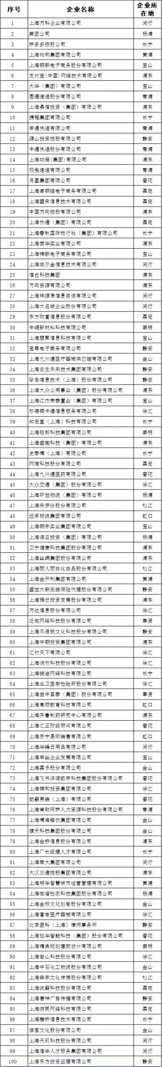 2024上海服務業(yè)企業(yè)100強