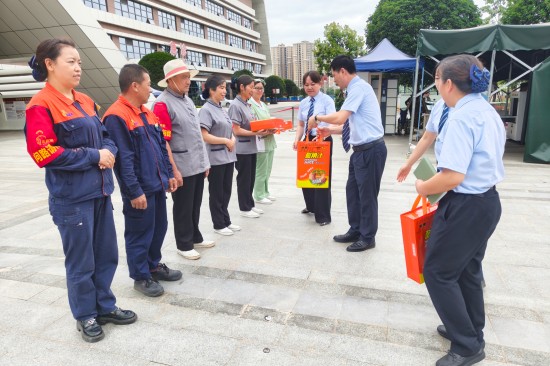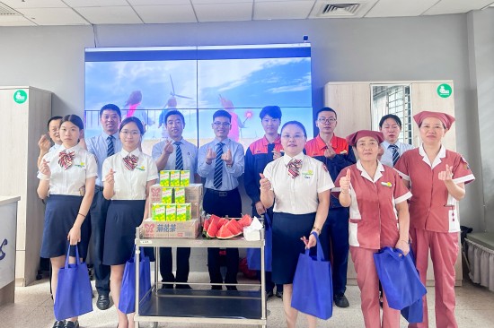 同時(shí)為員工們送去清涼物資,將一份份滿載著關(guān)懷的“清涼大禮包”遞到一線員工的手中。朱總在項(xiàng)目現(xiàn)場(chǎng)叮囑:“大家務(wù)必做好自我防護(hù),科學(xué)安排作息,確保安全度夏!”一句句貼心的關(guān)懷,一份份清涼的問(wèn)候,正轉(zhuǎn)化為護(hù)航健康的堅(jiān)實(shí)屏障,更凝聚成全員戰(zhàn)高溫、保服務(wù)的澎湃動(dòng)能。