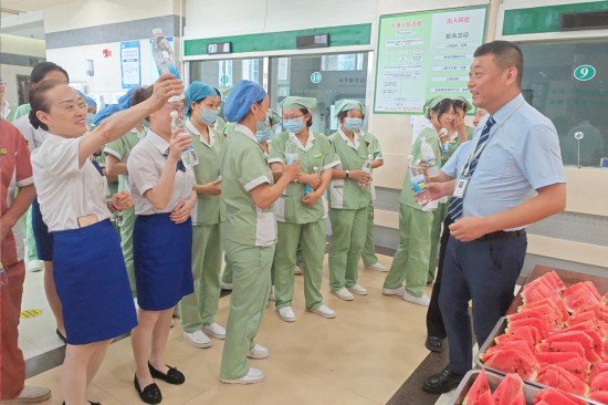 炎炎夏日,驕陽(yáng)似火。面對(duì)全國(guó)多地持續(xù)的“烤”驗(yàn),有這樣一群人,他們不畏“暑”“烤”,依然堅(jiān)守在項(xiàng)目服務(wù)一線。為關(guān)懷在高溫下堅(jiān)守的一線員工,切實(shí)保障他們的身體健康與安全,“醫(yī)管家”深入開展“夏送清涼”慰問(wèn)活動(dòng),將絲絲關(guān)愛(ài)織成一片綠蔭,為他們撐起清涼傘,讓他們深切感受到來(lái)自公司“大家庭”的濃濃關(guān)懷。