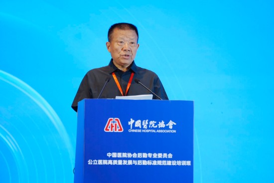 中國(guó)醫(yī)院協(xié)會(huì)后勤專業(yè)委員會(huì)主任委員,中國(guó)醫(yī)學(xué)科學(xué)院北京協(xié)和醫(yī)院原黨委副書記柴建軍發(fā)表致辭。