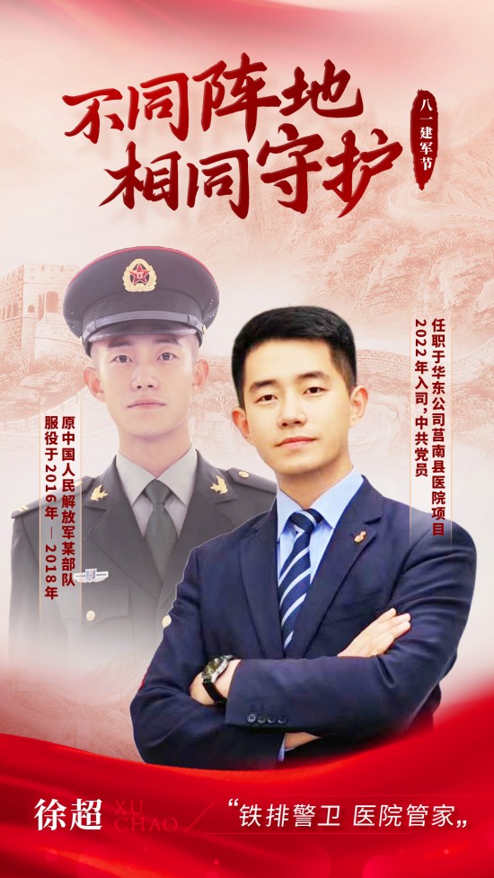 5年的軍旅生涯錘煉了自己忠誠擔當、紀律嚴明的軍人本色。退役后加入“醫(yī)管家”大家庭,依舊將軍隊作風融入工作:以“令行禁止”的執(zhí)行力攻堅克難,以“服務為本”的初心踐行集團“三服務”標準。從握鋼槍到執(zhí)工具,將兵心融入到工作中,堅持以標準化培訓員工,傳承軍人精神,在面對崗位服務對象多元化工作中堅持以“始終沖鋒在前”,用行動詮釋“退伍不褪色,崗位建新功”的誓言。