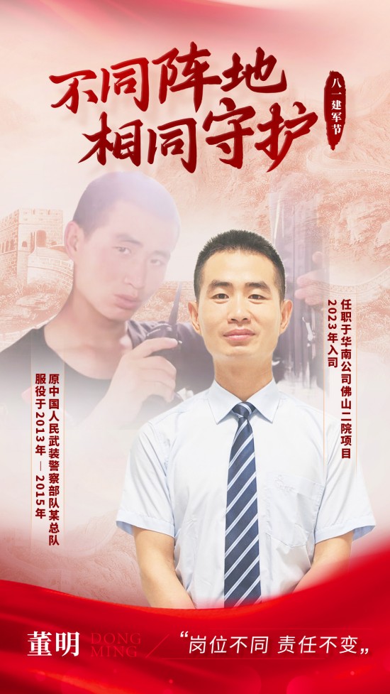 “一、二、三、四”、“咱當兵的人……”,熟悉的口號聲和歌聲回響在耳畔,國防綠喊出震耳欲聾的口號,烈日下訓練場上的汗水,這段軍旅生涯錘煉了我堅韌不拔的意志和嚴謹自律的作風,也讓我深刻理解責任與擔當?shù)恼嬲x。作為一名亙泰人,我始終將部隊培養(yǎng)出的優(yōu)良品質融入工作,面對醫(yī)院物業(yè)繁雜瑣碎的事務,始終秉持“服務至上”的理念,努力為醫(yī)院創(chuàng)造一個安全、舒適、高效的工作環(huán)境。在未來的工作中,我將繼續(xù)發(fā)揚軍人的優(yōu)良傳統(tǒng),不斷提升專業(yè)能力,在平凡的工作崗位貢獻更多力量。