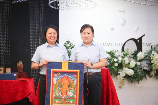 隨著拍賣(mài)師鏗鏘有力的開(kāi)場(chǎng),拍賣(mài)會(huì)現(xiàn)場(chǎng)氣氛瞬間點(diǎn)燃。紅木筆筒、清代美品紅皮老葫蘆、藏族唐卡黃財(cái)神、雙面蜀繡等珍貴拍品依次亮相,每件物品背后都承載著捐贈(zèng)者的故事與祝福。當(dāng)那幅巧奪天工的《雙面蜀繡》徐徐展開(kāi)時(shí),現(xiàn)場(chǎng)響起陣陣驚嘆。一針一線間盡顯文化的魅力,更象征著愛(ài)心傳遞的雙向美好。書(shū)法作品《更上一層》則以“事業(yè)與愛(ài)心共進(jìn)”的深刻寓意引發(fā)多輪競(jìng)價(jià)。拍賣(mài)師動(dòng)情地說(shuō)道:“每一次舉牌,都是對(duì)困難同仁的一次有力托舉。”