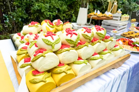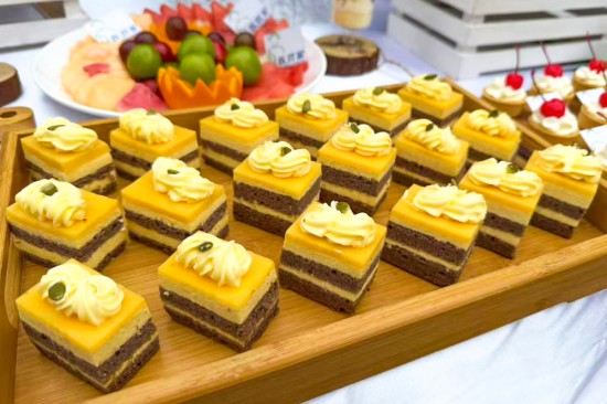 當(dāng)序曲奏響,主角們紛紛登場(chǎng),一起譜寫(xiě)一首舌尖交響曲。低糖低鹽的精準(zhǔn)配比,激發(fā)食材本身鮮香。經(jīng)過(guò)“選料—腌味—定形—脆皮—烤焙”5大工序,“皮如琥珀、肉似瓊脂”的烤乳豬,“閃亮”登場(chǎng);看似相同的面點(diǎn),卻有著不同的驚喜,每一枚上都精心印刻著吉祥一字,吃下的是美味,收獲的是“平安喜樂(lè),福壽雙全”;色彩繽紛的茶歇,采用減糖安心的動(dòng)物奶油制作,松軟到入口即化。
