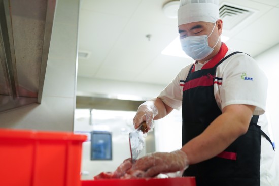 城市還在酣睡時(shí),后廚人員采購(gòu)的新鮮菜品開(kāi)始過(guò)“手作安檢”。阿姨們精挑細(xì)選,每一片帶著大自然氣息的葉菜,在水流中被洗凈,將脆度鎖在梗里。我們堅(jiān)信,唯有經(jīng)過(guò)雙手的溫柔篩選,食材的生命力才得以被真正喚醒。手洗從不是復(fù)古儀式,而是飽含自然最初的鮮活與恰到好處的溫度。