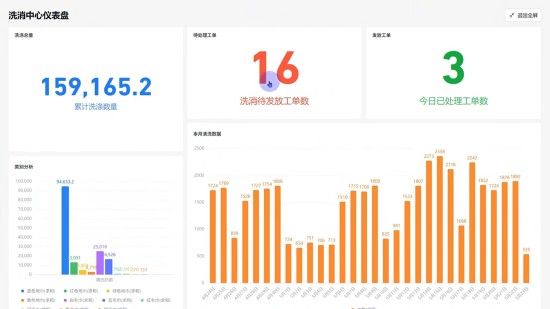 針對洗消中心物品繁雜、不易追蹤的難題,“醫(yī)管家”5.0云蝶智勤為洗消中心帶來了智慧化解決方案。系統(tǒng)實時記錄物品清洗消毒及發(fā)放情況,確保送洗時效;同時基于大數(shù)據(jù)分析,對不合理數(shù)據(jù)及時干預,從而優(yōu)化工作流程。