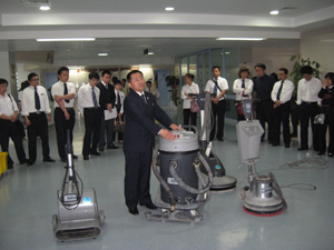 這次培訓的主要內容是:(一)保潔車擺放及日常保潔標準化;(二)保潔專項及硬地面保養(yǎng)程序;(三)保潔表格的日常運用;(四)生物危害控制與管理教程;(五)現(xiàn)場培訓演習。