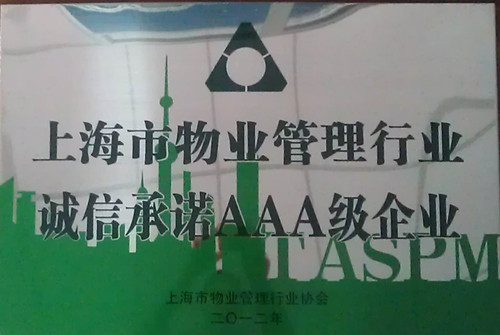 我公司榮獲“上海市物業(yè)管理行業(yè)誠(chéng)信承諾AAA級(jí)企業(yè)”