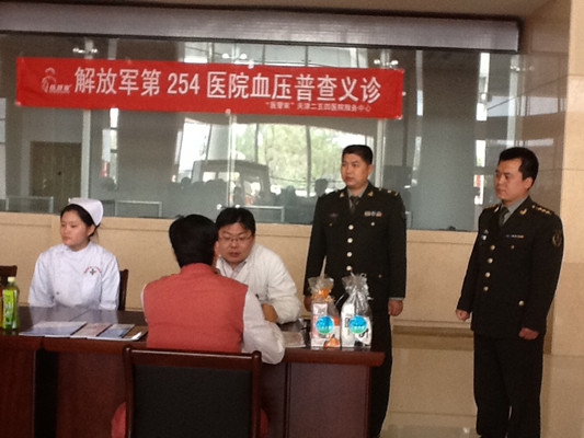 4月26日,經(jīng)院務(wù)處王處長(zhǎng)批準(zhǔn),王助理協(xié)調(diào),中國(guó)人民解放軍第254醫(yī)院在新住院部大樓1樓為我服務(wù)中心員工進(jìn)行血壓普查義診活動(dòng)。