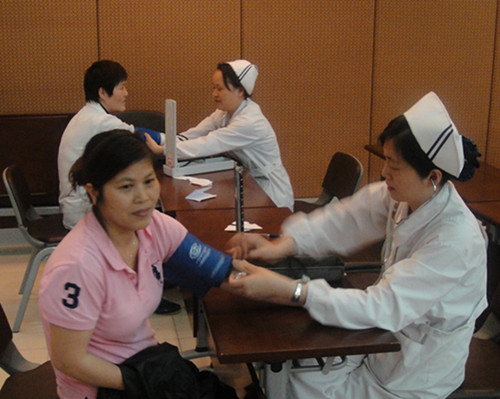 為確保義診高效、圓滿地完成,李惠利醫(yī)院白副院長、呂科親自到“醫(yī)管家”李惠利醫(yī)院服務(wù)中心了解情況,并與醫(yī)院護理部老師溝通,護理部張主任、鄭主任親自帶隊為我服務(wù)中心三百多名員工測量血壓。龍賽醫(yī)院安排醫(yī)院第三黨支部的專家們?yōu)槲覀兊膯T工進行量血壓、心電圖等檢查項目,總務(wù)科王老師和院感科郭老師在現(xiàn)場進行組織協(xié)調(diào)。專家們耐心細(xì)致地詢問員工的身體情況,為前來就診的員工答疑解惑。他們不但針對相關(guān)疾病提出治療意見,還給大家講解健康保健知識并給出日常飲食和鍛煉方面的建議,使得大家受益匪淺。