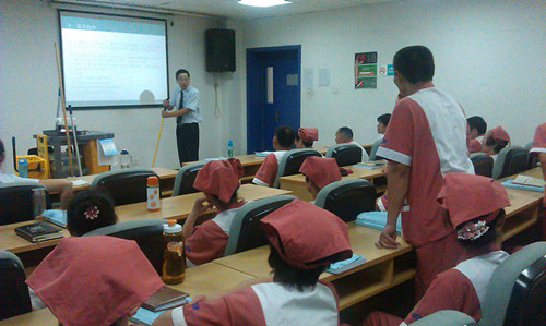 2012年8月13日至17日,左武祥經(jīng)理共進(jìn)行了《六步工作法》、《保潔車的擺放》、《消毒藥劑的配比》、《電梯員服務(wù)禮儀》、《電梯駕駛員安全操作規(guī)程》、《管理人員如何管理》、《三甲評(píng)審細(xì)則》等課程培訓(xùn),進(jìn)一步詳盡地講解各崗位工作規(guī)范,加深了員工的理解和認(rèn)知,奏響了迎接“三甲”復(fù)審的前奏曲。